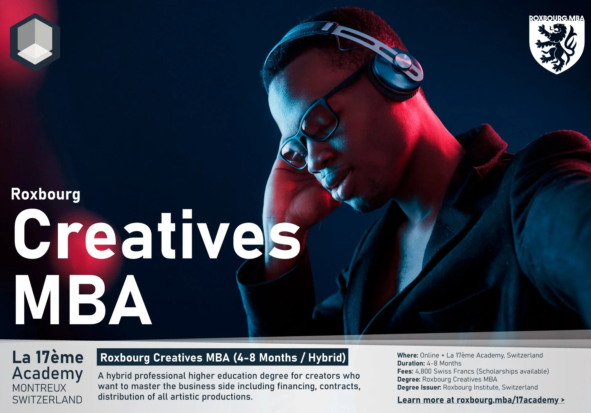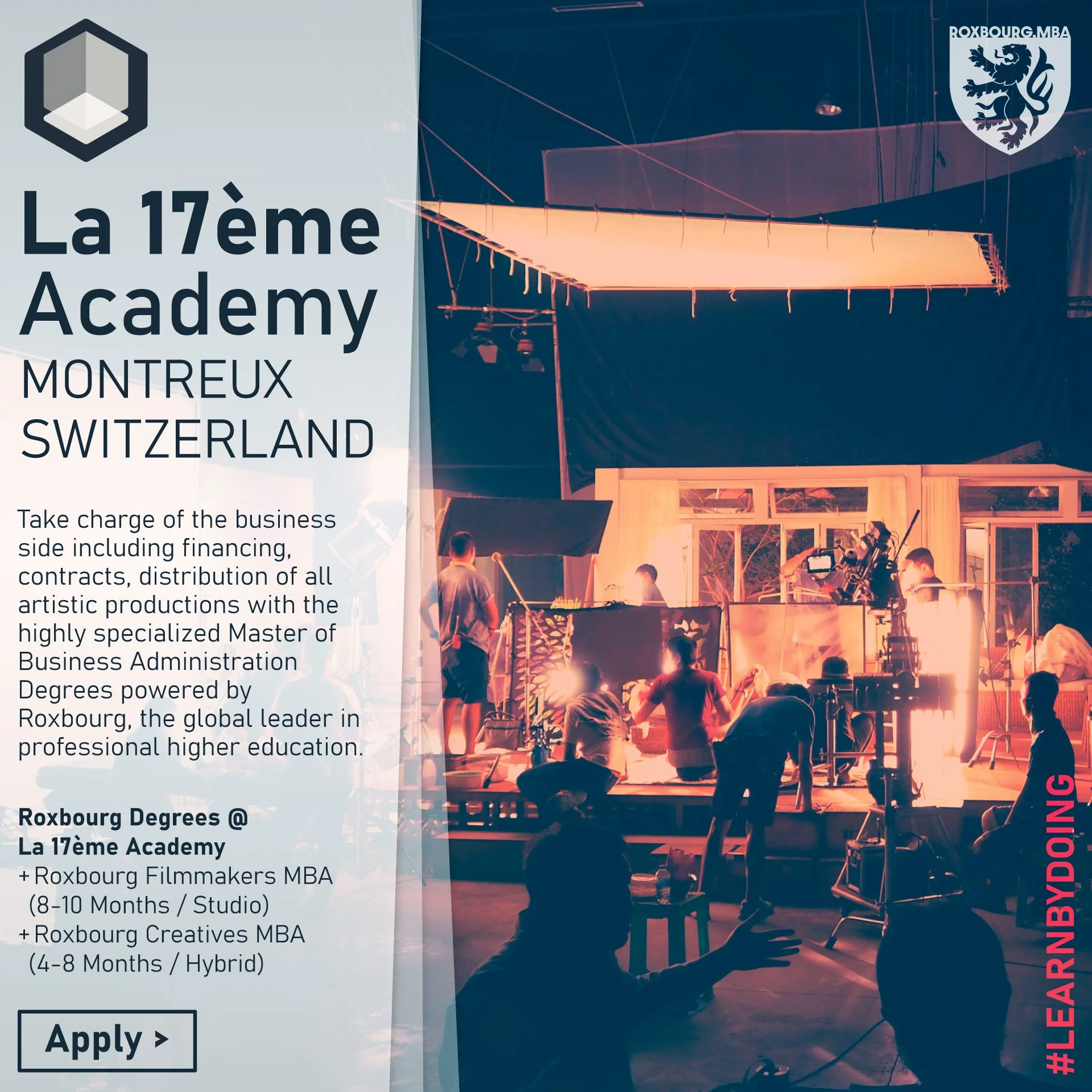Start your MBA at La 17ème Academy to master the business side of your artistic productions.Apply now > Roxbourg Degrees @ La 17ème Academy Celebrate your graduation at the GoodFestival Start your Roxbourg experience. Apply now, it's free >