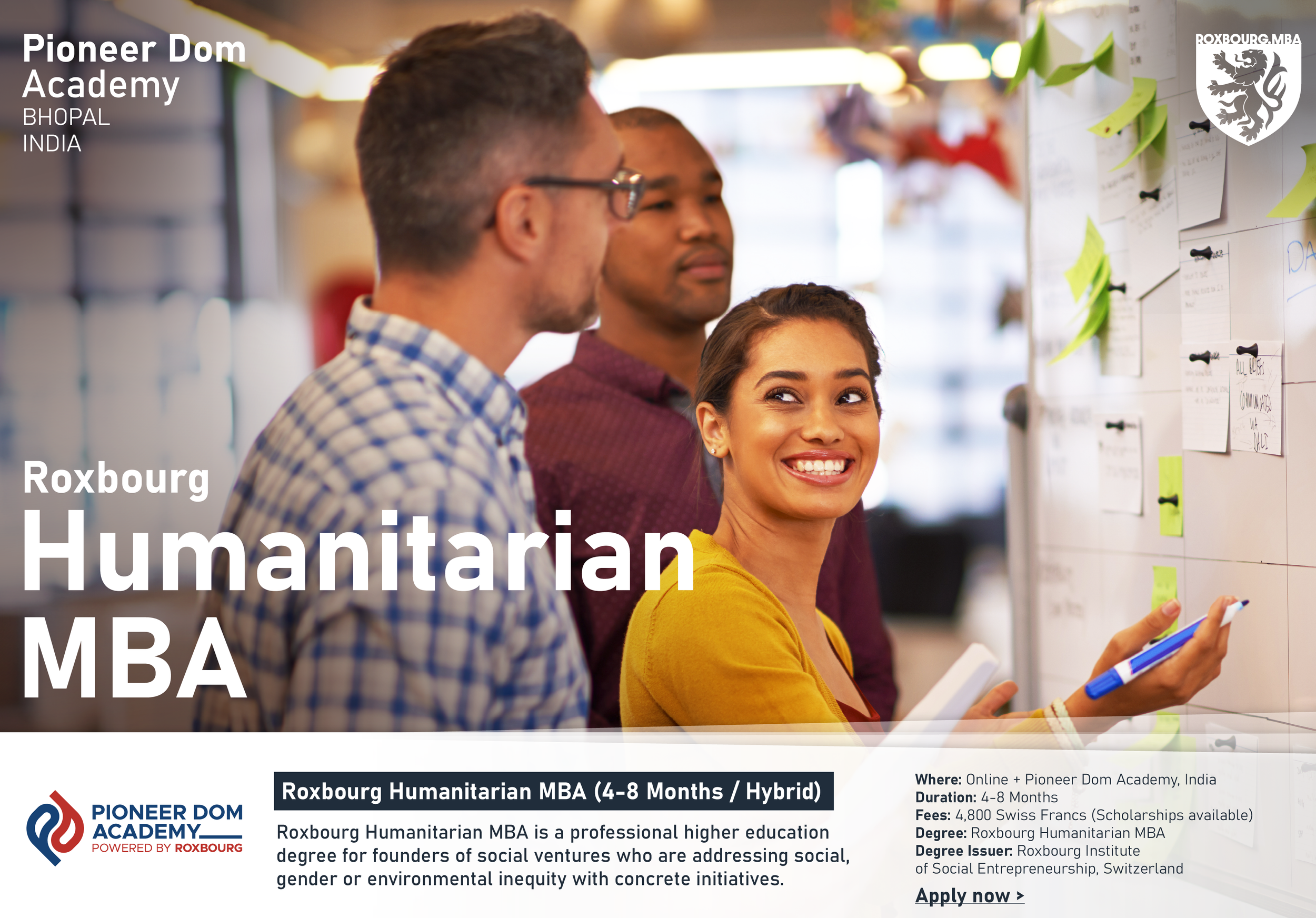 Start your Roxbourg MBA at Pioneer Dom Academy to master rural entrepreneurship.Apply now > Celebrate your graduation at the GoodFestival Start your Roxbourg experience. Apply now, it's free >